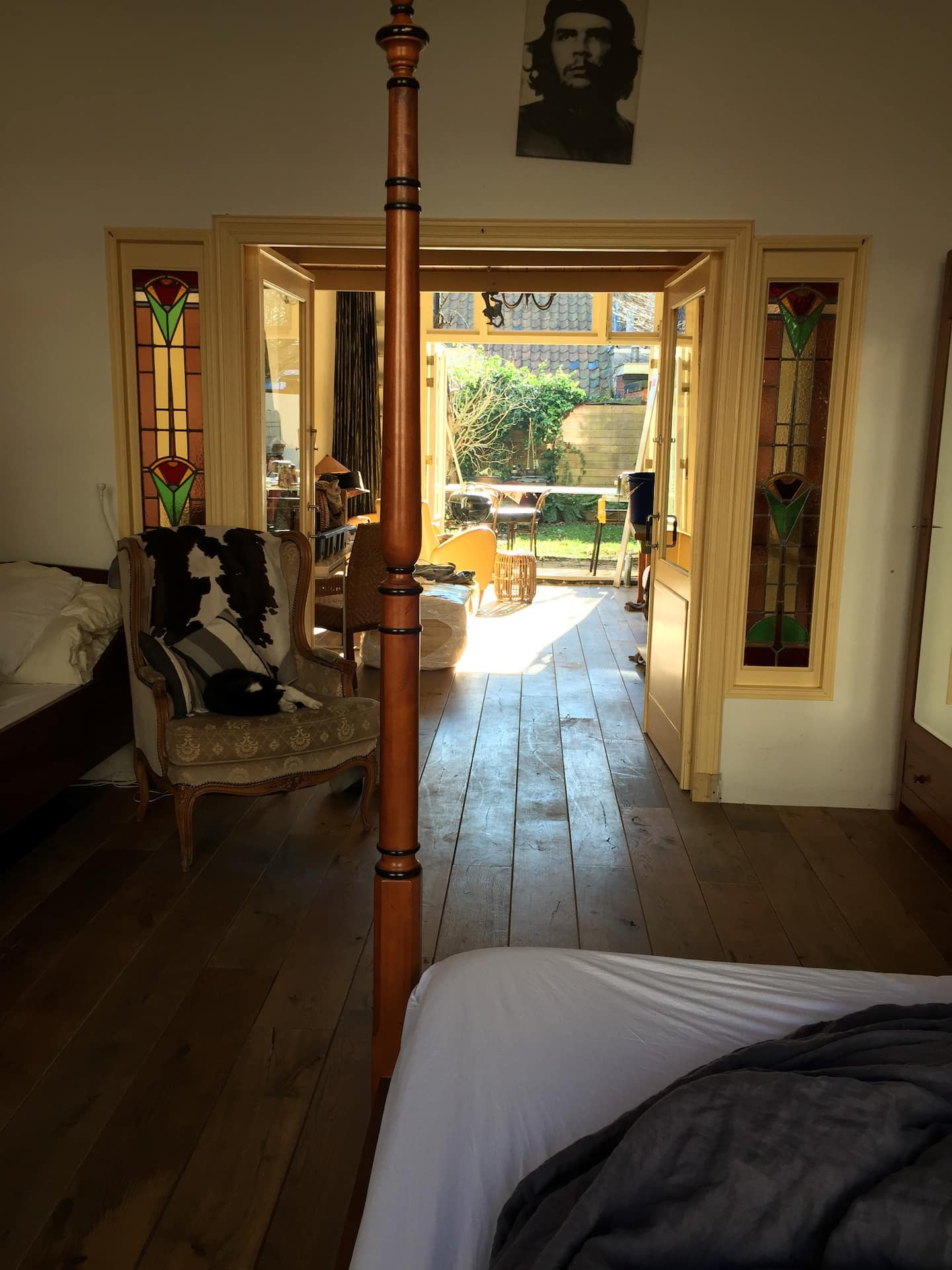 Kom slapen in deze heerlijk ruime benedenwoning uit het jaar 1906 met openslaande deuren naar de rustige tuin in een gezellige wijk in Groningen! De woning heeft een eigen badkamer en kleine keuken met uitzicht op de tuin. Er is keuze uit verschillende slaapplekken, naast een twee- en eenpersoonsbed ook een vide en slaapbank. Het stadscentrum is op loop afstand, net als het museum en station. Een kinderbedje, de hond mee, bijna alles kan, dus vraag gerust!